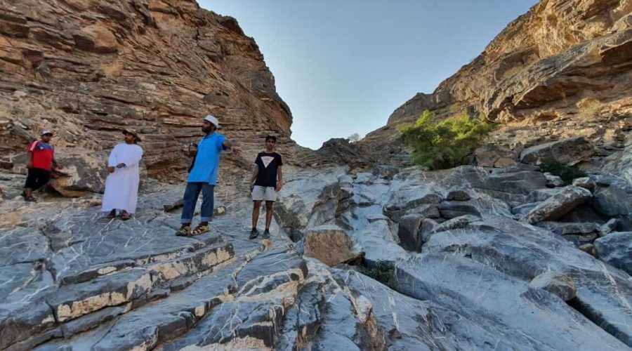We depart Muscat drive to Saal Mountain, or Jabal Khoneh is a mountain in the village of Sa’al in the outskirts of the city of Muscat. If you have ever driven out of Muscat on the Dakhiliyah Highway (Road No. 15), chances are that you would have seen the Sa’al Mountain along the highway. Sa’al Mountain (and the whole surrounding area to be honest) is a great place to explore especially if you live in Muscat due to its proximity to the city. The trek to the top (aka Sa’al Stairs) is a short yet challenging trek, but extremely rewarding with views of the surrounding mountains and wadis to the West and South, and the industrial area of Muscat to the North and East, then after continue to Al Munkhariq Trek is a trekking path through a wadi near Sa’al village in Muscat. The trek itself is not really remarkable, except for the fantastic sinkhole formed from the erosion of the limestone boulders inside the wadi, which is what the locals refer to as Al Munkhairq, which means ‘the bored’ rock as in the hole into the rock.